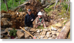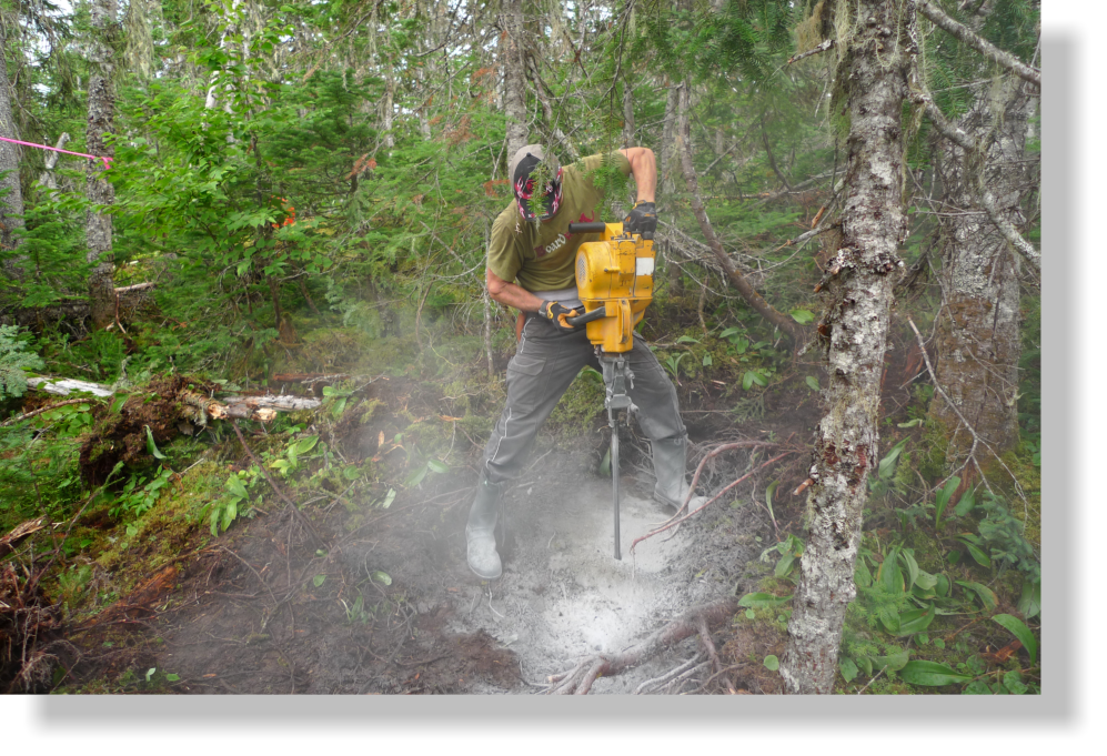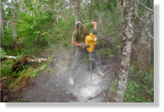 transporter la foreuse de 30 kg, l'équipe a du couper un sentier